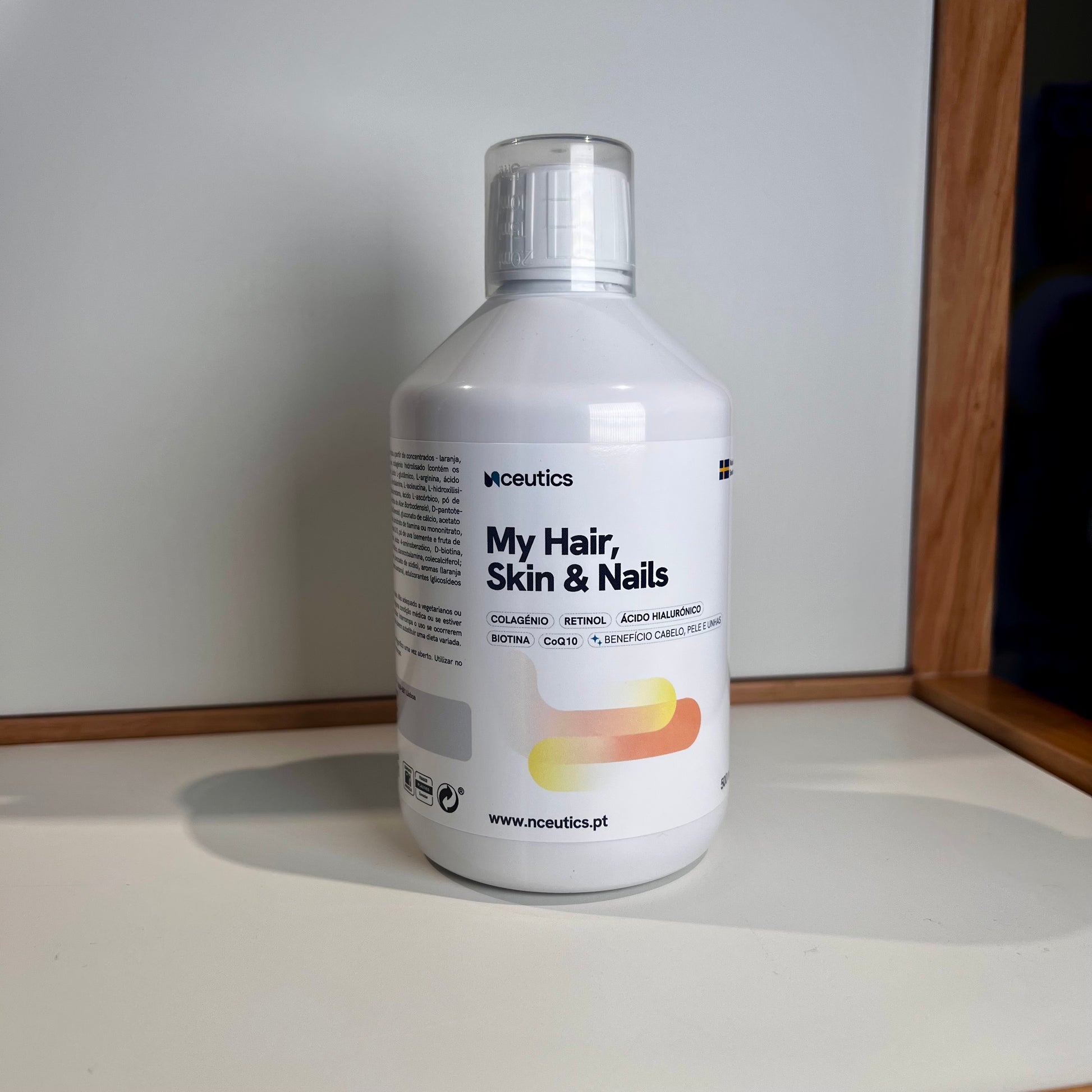 Fórmula de colagénio, enriquecida com retinol, ácido hialurónico, biotina e coenzima Q10 para uma pele, cabelo e unhas fortes, brilhantes e ultra resistentes.